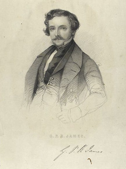The False Heir by G. P. R. James is here quoted from chapter 23, page 73 in the 1843 American edition by Harper & Brothers; Google-digitized and accessible via HathiTrust Digital Library.
